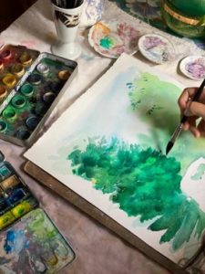- Matériaux: Aquarelle, papier aquarelle, Encadrement, passe-partout