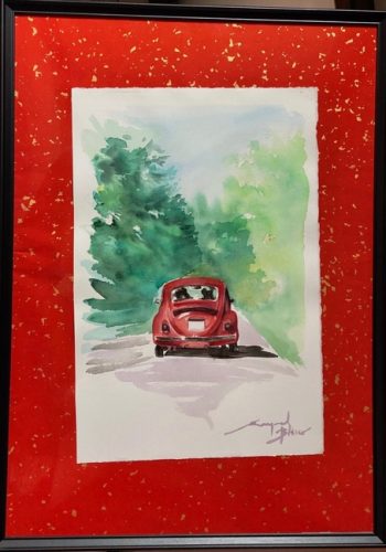 Aquarelle de voiture ancien, modèle coccinelle